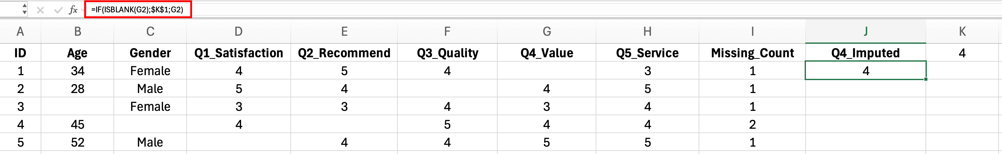 ขั้นตอน Excel สำหรับ Mean Imputation
