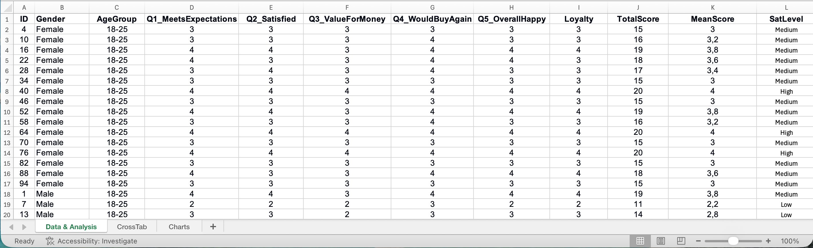 ตอนนี้คุณมี workflow ที่สมบูรณ์สำหรับการวิเคราะห์ข้อมูลแบบสอบถามใน Excel ตั้งแต่การเตรียมข้อมูลจนถึงการรายงานผลลัพธ์ แต่ละขั้นตอนสร้างไปสู่วิทยานิพนธ์ที่น่าเชื่อถือ