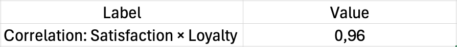 Una correlación significativa entre satisfacción y lealtad no prueba que la satisfacción causa lealtad. La relación podría ser inversa (la lealtad causa satisfacción) o ambas podrían ser causadas por una tercera variable. Solo los diseños experimentales con asignación aleatoria pueden establecer causalidad.
