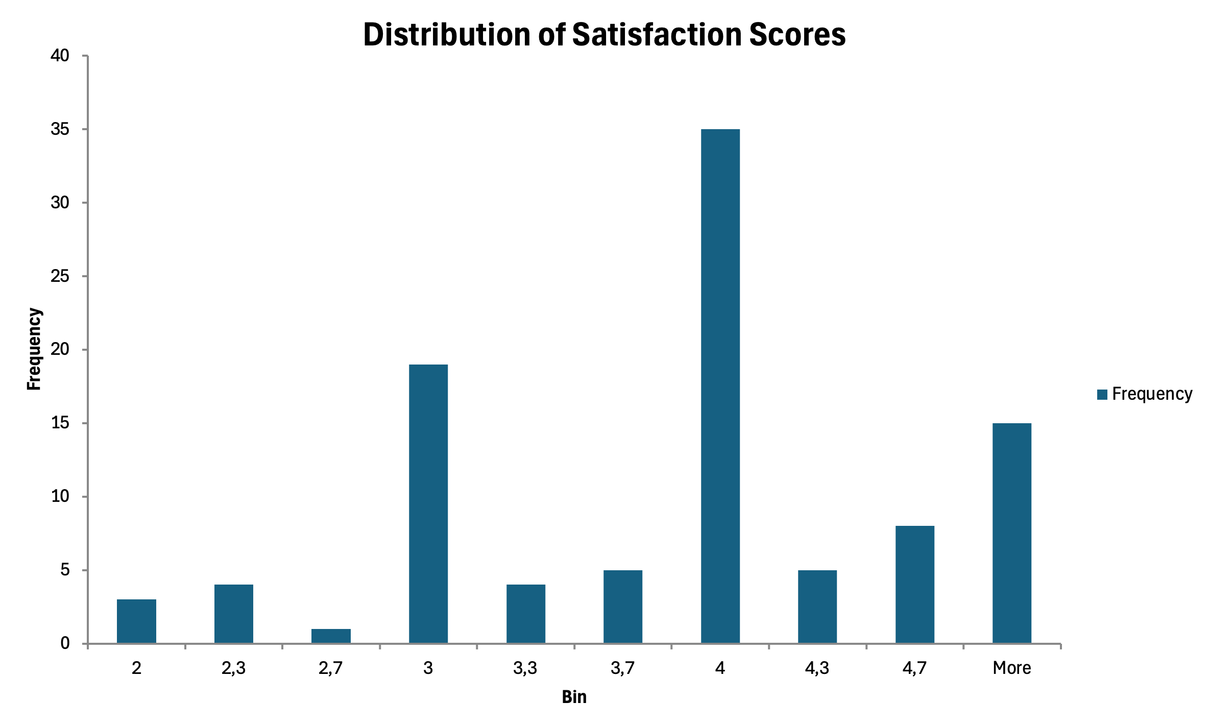 Las comparaciones post-hoc usando la prueba de Tukey revelaron que los participantes de 41 años o más (M = 4.02, DE = 0.72) reportaron satisfacción significativamente mayor que los de 18-25 años (M = 3.45, DE = 0.89), p = .014. El grupo de 26-40 años (M = 3.68, DE = 0.78) no difirió significativamente de ninguno de los otros grupos.