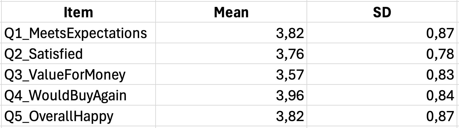 Con tus datos correctamente preparados, ahora puedes verificar si tu escala mide de manera confiable lo que pretende medir.
