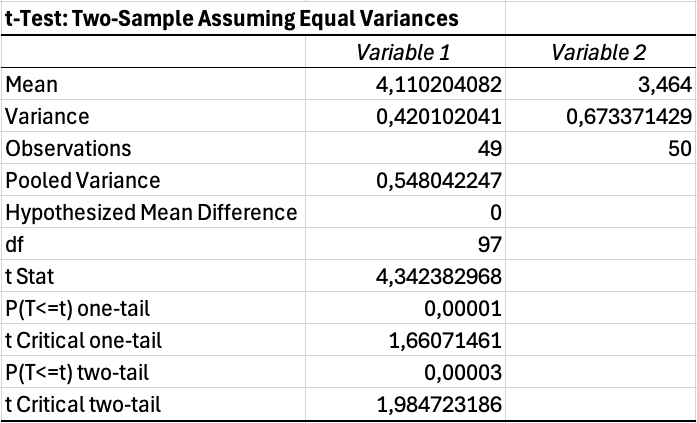 Una prueba t para muestras independientes [reveló/no reveló] una diferencia significativa en [VD] entre [Grupo 1] (M = [media], DE = [DE]) y [Grupo 2] (M = [media], DE = [DE]), t([gl]) = [valor t], p = [valor p].