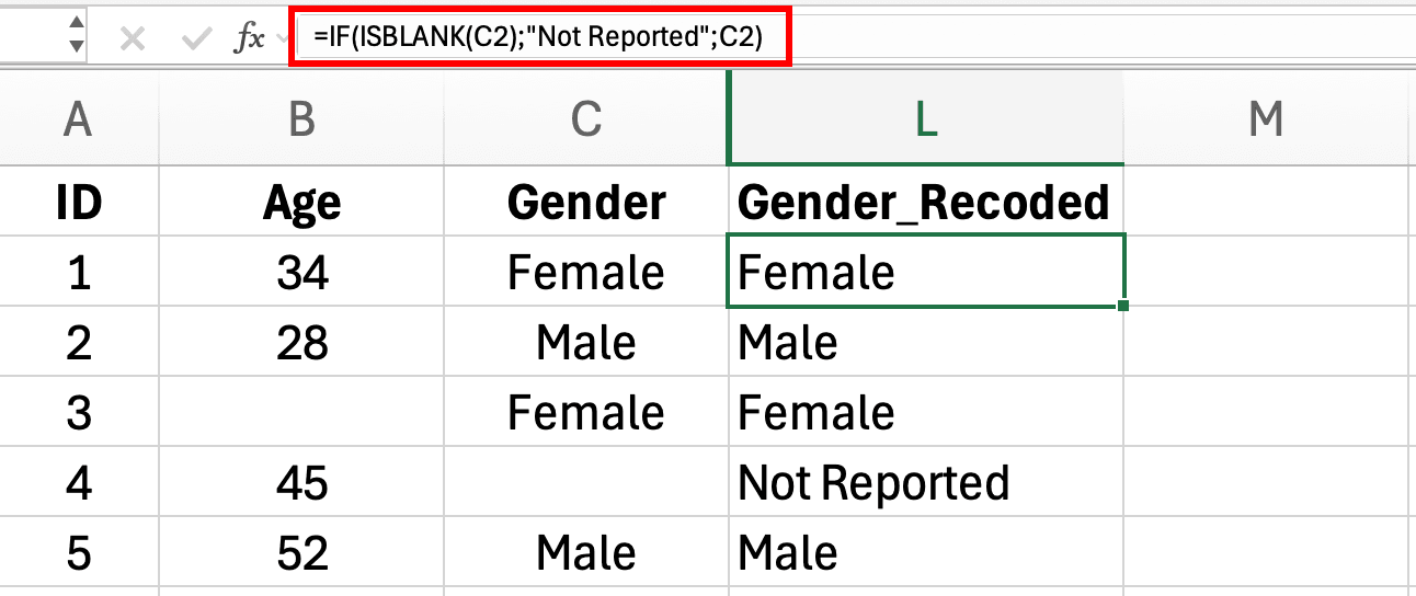 - Example: Gender becomes Male/Female/Non-binary/Not Reported