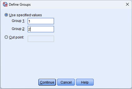 Haz clic en el botón Definir grupos. Ingresa los valores que representan tus dos grupos: