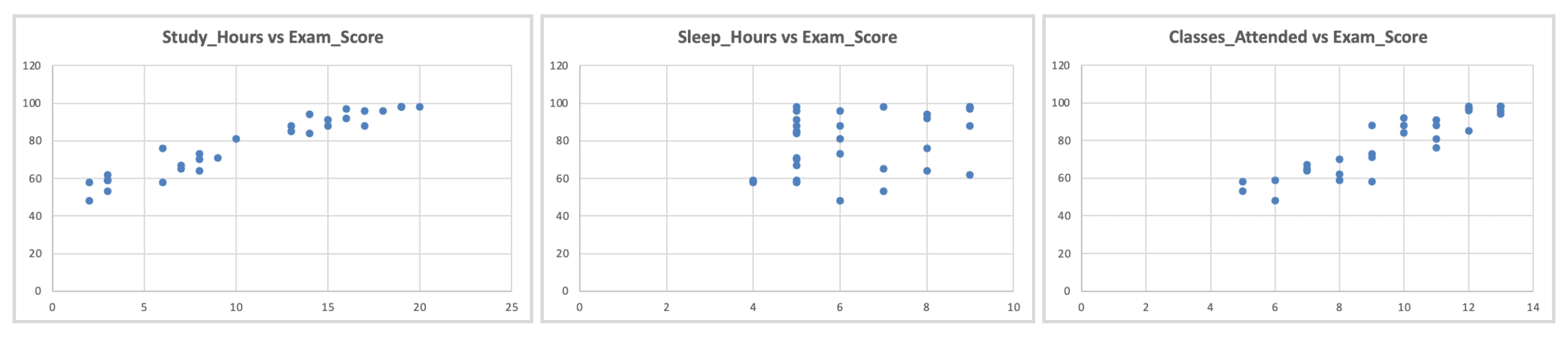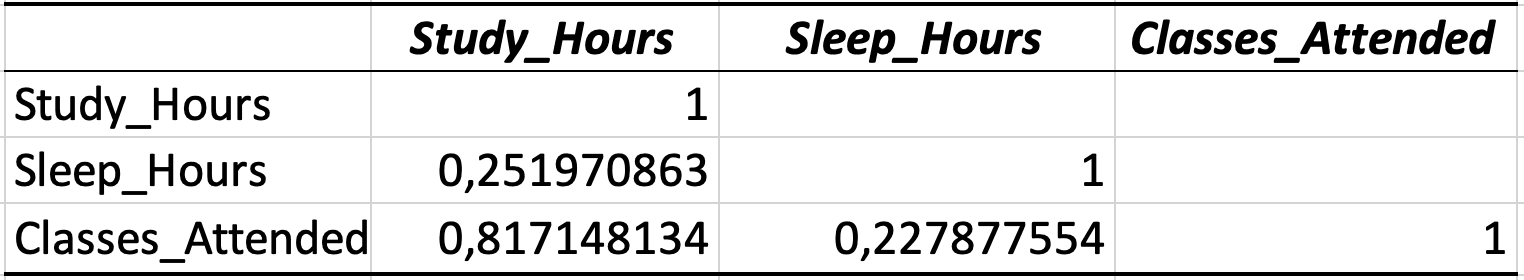 - Pregunta de investigación: ¿Las horas de estudio, el sueño y la asistencia juntos predicen el rendimiento en el examen, y cuál predictor importa más?